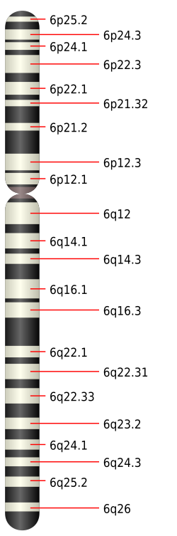 - ↑ (eng.) Genetics home reference - bolesti vezane za kromosom 6, pristupljeno 13. srpnja 2013.