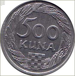 | Novčanice | 50 banica (oznaka b), 1, 2, 10, 20, 50, 100, 500, 1000, 5000 kuna |