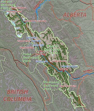 - ↑ Canadian Rocky Mountain Parks, United Nations Environment Programme (eng.) Preuzeto 3. rujna 2012.