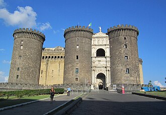 - Novi dvorac (Castel Nuovo ili Maschio Angioino) u samom središtu grada; na popisu svjetske baštine. Castel Nuovo je svjedočio mnogim povijesnim vjerskim događajima: godine 1294., papa Celestin V. je abdicirao u dvorani dvorca, nakon čega je opet tu, kardinalskim kolegijumom izabran papa Bonifacije VIII..