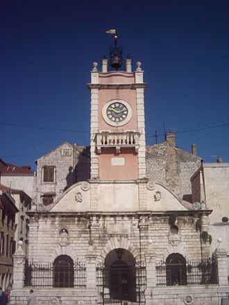 Nasuprot Gradskoj loži smještena je Gradska straža (1562.) u čijem je prostoru bio smješten Etnološki odjel Narodnog muzeja, a nakon obnove služi kao izložbeno-galerijski prostor. U 18. stoljeću na Gradskoj straži je nadograđen toranj sa satom koji neprekidno radi još od davne 1803. godine. Veće zvono, koje otkucava sate prenijeto je s Kapetanove kule (Bovo dí Antona), a manje koje otkucava četvrtine sata, sa susjedne crkve sv. Lovre. Sat je izradio i montirao gradski urar Martini. Inače, u Zadru se još 1555. spominje javni gradski sat na zvoniku crkve Četrdeset mučenika ili sv. Barbare koja je stajala u blizini današnje kavane Forum.