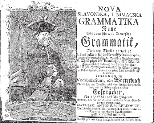 Nova slavonska i nimačka gramatika (njem. Neue slavonisch und Deutsche Grammatik) Matije Antuna Relkovića tiskana je u Zagrebu 1767. i pretisnuta još dva puta u Beču, 1774. i 1789. godine.