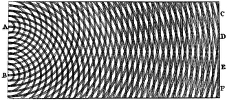 Huygensovo načelo veli da se iz svake točke do koje dopre val širi osnovni kuglasti val. Na prvi pogled čini se da se to načelo protivi pojavi ravnih valova, koje smo imali pri nesmetanom širenju svjetlosti. Međutim, to nije tako. Zamislimo da je ravni val dopro do neke ravnine AB. Od svake točke te ravnine širi se dalje kuglasti val. Očito je ovojnica (anvelopa) svih tih kuglastih valova opet ravnina. Do te ravnine A’B’ dopru svi kuglasti valovi s istom fazom. Na svakoj drugoj plohi, uzmimo neku ravninu koso na smjer obiju ravnina, kuglasti valovi, koji dolaze iz različitih točaka, titraju s različitom fazom, pa se u prosjeku poništavaju. Interferencijom osnovnih kuglastih valova ostaje ravni val, koji se širi prema naprijed.