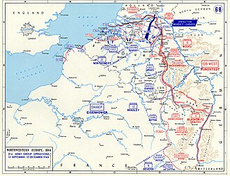 Nakon poraza u Normandiji tijekom ljeta 1944., ostaci njemačkih snaga povukli su se preko Beneluxa i istočne Francuske do granice Njemačke gdje su stigli koncem kolovoza. Na sjeveru, u prvom tjednu rujna, britanska 21. grupa armija pod zapovjedništvom feldmaršala Bernarda Montgomeryja poslala je svoju 2. britansku armiju pod zapovjedništvom generala Milesa Dempseya u napad na crti Antwerpen do granice sjeverne Belgije, dok je u isto vrijeme 1. kanadska armija pod zapovjedništvom generala Harryja Crerara imala zadaću da zauzme luke Dieppe, Le Havre i Boulogne-sur-Mer. Ma jugu, američka 12. grupa armija pod zapovjedništvom generala Omara Bradleya se približila njemačkoj granici sa zapovijedima da koncentriraju svoja djelovanja prema Aachenu zajedno sa američkom 1. armijom pod zapovjedništvom generala Courtneya Hodgesa, kao podrška Montgomeryjevom prodoru prema Ruhrskoj oblasti. U međuvremenu američka treća armija generala Georga Pattona napredovala je prema Saaru. U isto vrijeme američka 6. grupa armija, generala Jacoba Deversa, nakon iskrcavanja na jugu Francuske napredovala je prema Njemačkoj.
