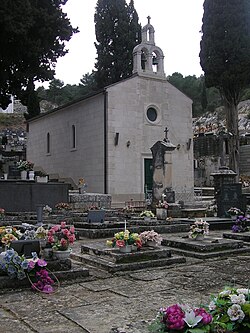 Nalazi se na groblju, pored utvrde Brštanik. Podignuta je u drugoj polovici 18. stoljeća. Godine 1893. produžena je za 4 metra i u visinu podignuta za 2 metra, tako da današnje dimenzije iznose: dužina 12,40, širina 5,74 i visina 5 metara. Preslica za tri zvona, kameni okvir rozete i pragovi za vrata i prozore djelo su klesara Petra Juričevića iz Korčule. U istoj prigodi nabavljen je kip sv. Roka, a ponad vrata postavljena je ploča s natpisom o obnovi i popravku. Drveni je kor za vrijeme župnika Klarića 1967. zamijenjen betonskim, a župnik Bebić je 1972. preuredio svetište i postavio oltar prema narodu. U crkvi su slike Srca Isusova i Srca Marijina, djela G. B. Filippija iz Verone 1855., te slike Bezgrješnog Začeća, sv. Roka i sv. Ivana Krstitelja[6]