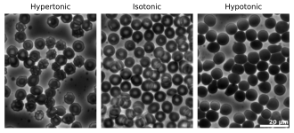 Osmoza u stanici nastupa zbog razlike u osmolaritetu citoplazme s unutrašnje, i otopine s vanjske strane membrane, što dovodi do smežuravanja ili bubrenja stanice. Češća pojava bubrenja i lize stanice nastupa zbog veće koncentracije otopljenih iona i malih organskih molekula u stanici, zbog čega je ona hipertonična u odnosu na svoju okolinu, pa voda ulazi u stanicu. Stanice se problemu visokog osmolariteta prilagođavaju, ovisno o carstvu kojem pojedini organizam pripada: