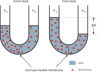 Pri prolasku molekula otapala kroz membranu dolazi do porasta volumena otopine na jednoj strani membrane i smanjenja volumena otopine na drugoj strani. Porast volumena otopine na jednoj strani stvara hidrostatski tlak koji se suprotstavlja osmozi, to jest osmotskom tlaku koji djeluje na membranu. Kada se ova dva tlaka izjednače, uspostavit će se dinamična ravnoteža, to jest više neće doći do podizanja razine otopine, dok molekule otapala i dalje prolaze kroz membranu ali u oba smjera jednako intenzivno. Tlak pri kome se uspostavlja ova ravnoteža naziva se efektivni osmotski tlak. Osmotski je tlak veći što je razlika koncentracija otopina veća, i obrnuto. Molekule otapala se gibaju iz otopine s nižom (hipotonična otopina) u otopinu s višom koncentracijom otopljene tvari (hipertonična otopina). Osmozu možemo promatrati kao poseban slučaj difuzije. Osmolaritet je relativna koncentracija otopljene tvari u sredini u kojoj se nađe stanica.
