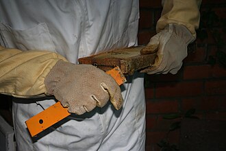Pčelarski nož predstavlja neophodan alat svakog pčelara. Napravljen je od nehrđajućeg čelika, s jedne strane je ravan i oštar, a s druge savijen skoro pod pravim kutom. Služi za odvajanje poklopne daske od tijela košnice, kao i za razdvajanje nastavaka tijela košnice jednog od drugog, zatim za razdvajanje okvira, skidanje voska i propolisa s pojedinih dijelova košnice, čišćenje zidova i podnjače košnice i slično. [2]