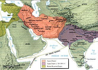 Transazijske prometne rute bitno su dobile na značaju na prijelazu iz 3. u 4. stoljeće prilikom stabilizacije dvaju velikih carstava – Sasanidskog Perzijskog na istoku odnosno Rimskog Carstva na zapadu[51]:str. 4. i 15.-16.. Zbog njihovih političkih tenzija odnosno povremenih sukoba trgovci su nerijetko preferirali pomorske prometne rute nauštrb kontinentalnih, a dva važna odvojka bili su Crveno more i Perzijski zaljev odakle se roba otpremala na zapad preko Mezopotamije[51]:str 4. 15-16. U 4. stoljeću Amijan Marcelin opisuje Perzijski zaljev kao more prepuno brodovima odnosno njegove obale ispunjene gradovima i selima[51]:str. 9., a Mojsije Horenski piše o izuzetnoj kvaliteti zaljevskih bisera koji su vrlo cijenjeni na sasanidskom dvoru[50]. S obzirom da ograničen broj primarnih izvora spominje sasanidsku mornaricu, pretpostavlja se da su iranske luke bile uglavnom trgovačkog karaktera[51]:str 6.. Rev-Ardašir (suvremeni Rišaher) bio je glavna sasanidska luka iz koje je roba opskrbljivala Firuzabad, Bišapur i Istahr[46]:str 33.. Drugi važni lučki grad bio je Siraf koji je gravitirao prema Širazu i Firuzabadu, a njegovo osnivanje datira se u vrijeme vladavine Šapura II.[51]:str 6. Sasanidi su imali kolonije na Šri Lanki i u Maleziji, no one nisu bile vojnog već trgovačkog tipa[51]:str 8.. Prisutnost kineskih pomorskih trgovaca u Perzijskom zaljevu ovjerena je još u 4. stoljeću, dok su također na obali južne Kine pronađeni sasanidski srebrenjaci što svjedoči o aktivnoj iransko-kineskoj pomorskoj trgovini[51]:str 13.. Sasanidske umjetnine poput stakla pronađene su i u Koreji i Japanu, ali danas nije moguće sa sigurnošću utvrditi jesu li tamo stizale izravnim pomorskim putem iz Perzijskog zaljeva ili pak kopnenim karavanama[50]. Glavni sasanidski izvozni proizvodi bili su platno, vuna, pamuk, parfemi i osobito sagovi[51]:str 3., a iz Indije i Kine prvenstveno je uvožena svila[50]. Rimsko-perzijski ratovi i visoki sasanidski porezi na svilu nagnali su Rimljane da potraže nove pomorske rute preko Crvenog i Arapskog mora, što je pak za posljedicu imalo jačanje prometa u zapadnoj Arabiji odnosno naglo bogaćenje gradova poput Meke[51]:str 5.. Iz arapskih izvora saznajemo da su u kasnom sasanidskom razdoblju odnosno starom vijeku većinu stanovništva na obali zaljeva činili Perzijanci, dok su Arapi živjeli u okolnim pustinjama[51]:str 9.