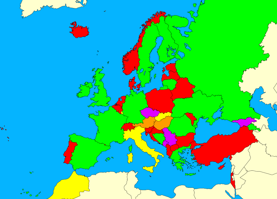 * Žuto = Države koje su se natjecale na prijašnjim Eurosongovima, no na ovogodišnjem se ne natječu