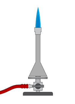 - Bunsenov plamenik sastoji se od postolja za dovod, sapnice za ispust, te dimnjaka za provod i izgaranje smjese plina i zraka, koji na sebi ima prolaze s prstenom za regulaciju dovoda zraka. Maksimalna temperatura koja se njime može postići iznosi oko 1300 °C. Osim za zagrijavanje također se koristi za kvalitativnu analizu minerala i soli jer mnogi spojevi boje plamen. To je svojstvo najizraženije kod alkalijskih metala, posebno kalija i natrija jer su gotovo sve njihove soli topljive tako da se ne mogu dokazati selektivnim taloženjem. Stakleno posuđe koje mora biti apsolutno suho suši se zagrijavanjem Bunsenovim plamenikom. Postoji i varijanta sa štednim plamenom. Izumio ga je njemački kemičar Robert Wilhelm Bunsen.