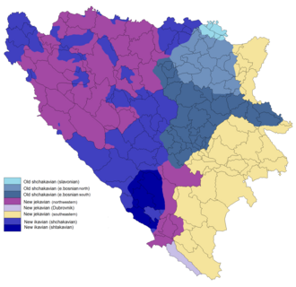 Područje sadašnje Bosne i Hercegovine, od početka dijalekatske diferencijacije u 11. i 12. stoljeću, uglavnom pripada štokavskom narječju, uz prevlast čakavskoga narječja na krajnjem zapadu, sadašnjem Bihaćkom kraju i Pounju. Do 15. stoljeća su u velikoj mjeri dovršene jezičnodijalekatske promjene, koje su dale miješani idiom štokavsko-čakavski u kojem prevladava štokavština. Sličan tomu je i izraz pisaca hrvatske književnosti u Dubrovniku u 15. i dijelu 16. stoljeća (Džore Držić, Šiško Menčetić, Dominko Zlatarić): štokavsko-čakavska mješavina u kojoj preteže štokavština, uz tu razliku što je u Dubrovniku ijekavski refleks jata prevagnuo nad ikavskim (s kojim supostoji), dok na području današnje BiH (što uključuje i zapad, tursku Hrvatsku) dominira ikavski govor (iako je prisutna i jekavica na istoku). Još jedna razlika je u tome što se pisani dokumenti u Bosni i Humu nisu oslobodili prevlasti ili snažnoga utjecaja crkvenoslavizama sve do turskoga osvojenja, osim u tekstovima na mramorovima. U promjenama koje su zahvatile područje od Sutle do Morave, od 12. do 15. stoljeća formirano je pet velikih narječnih zona: kajkavska, čakavska, zapadnoštokavska, istočnoštokavska i torlačka. Zapadnoštokavska obuhvaća Slavoniju i veći dio današnje BiH preko granica crte koja povezuje slijevove rijeka Bosne i Neretve (u sjevernijem dijelu skoro do Drine). Istočna štokavština je nazočna na najistočnijem dijelu BiH, u Podrinju, te dijelovima povijesne Travunje i istočnog Zahumlja. Upitna zamjenica je jedan od refleksa praslavenskog čto (što, šta....), s time da sjever zadržava šćakavsku izoglosu (očuvanje glasovnih skupova "šća" i "žđa", poput u rječima ognjišće, izvješće...) dok se na krajnjem jugu (desetak posto ukupnog dijalekta, Hercegovina, Zagora i jug Dalmacije) ta isoglosa gubi (ognjište, izvještaj..). Refleks jata je "i" na zapadu ("svidoci", "Stipan") i "je" ili "ie" na istoku ("sieče", "vjere"), s time da granica vjerojatno varira oko rijeka Bosne i Neretve, a mogući su i mješani ikavsko-jekavski dijalekti/govori poput neretvanskog (od Neretve do granice s istočnoštokavicom). Ikavski refleks jata je prvi puta upisan u baš u Bosni, 1331. Zapadna se štokavština od istočne razlikovala po tronaglasnom sustavu (poput čakavštine), dok je istočno štokavsko narječje imalo dva naglaska. Također, zapadna štokavština je kasnije izgubila jat (zatvoreno e), te duže sačuvala njegov parnjak (zatvoreno o), što je poglavito odlika hrvatskih govora (srpski "gube" jat dosta rano, vjerojatno pod zapadnobugarskim utjecajem/preplitanjem)