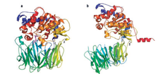 Bočni prikaz tercijalne strukture PE u Pymol-u, izvor: J. Gass and C. Khosla (2007.) , Prolyl endopeptidases, Cell. Mol. Life Sci