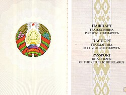 Korice bjeloruske putovnice su plave a može ju zatražiti svaki državljanin koji navrši 14 godina. Svi podaci o nositelju mogu se pročitati na bjeloruskom, ruskom i engleskom jeziku.