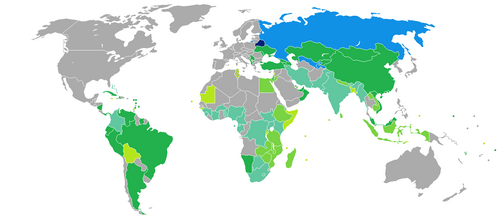 ██ Države za koje je potrebno izdavanje vize od strane nadležnog diplomatskog predstavništva.