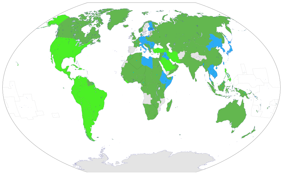 * Tamnozelena: Saveznici u Drugom svjetskom ratu prije Napada na Pearl Harbor, uključujući kolonije i okupirane zemlje.