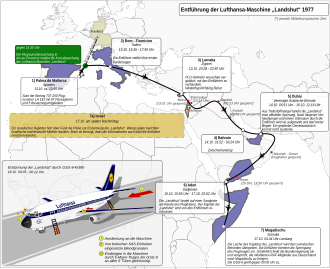 Menadžer i predsjednik udruge poslodavaca Hanns Martin Schleyer otet je 5. rujna 1977. u Kölnu. Otmičari su tražili od vlade oslobađanje svih 11 pripadnika organizacije. U Bonnu je organiziran krizni štab s kancelarom Helmutom Schmidtom na čelu. Njegov plan je bio odugovlačenje dok se ne sazna položaj taoca. Mjesec se dana nije ništa događalo, no tada je otet Lufthansin zrakoplov 13. listopada 1977. godine, na letu prema Frankfurtu od strane četvorice muslimanskih otmičara, koji su postavili iste zahtjeve kao RAF, i uz to oslobađanje dvojice istomišljenika iz turskog zatvora, te 15 milijuna dolara. Zrakoplov je preusmjeren u Italiju, a zatim i prema Cipru, Bahreinu i Dubaiju, da bi na kraju sletio u Mogadišu. Tamo su otmičari ubili pilota, a nakon toga su rizičnom akcijom njemačke tajne službe ubijena tri otmičara, ali nitko od talaca nije povrijeđen.