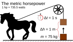 Popularna starija jedinica za snagu (koja je u Hrvatskoj i EU danas dopuštena samo kao dodatna informacija uz snagu izraženu u vatima) bila je konjska snaga (KS). Definirala se kao snaga sile kojom može neprekidno dugo vremena djelovati jedan konj. Zamišljeni model bio je da konj podiže teret pomoću užeta prebačenog preko koloture.