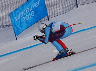 Natjecanje u spustu se sastoji od jedne vožnje koja traje otprilike dvije minute, ovisno o stazi, konfiguraciji terene, vremenskim prilikama i vještini skijaša. Prema važećim standardima staza je u spustu označena vratima, tj. štapovima označenim zastavicama u dvije boje, naizmjenično plava i crvena. Jedna vrata formirana su od 4 štapa, po dva lijevo odnosno desno između kojih je razapeta zastavica.
