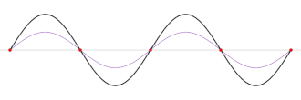 Najmanju frekvenciju titranja ima val koji kao jedini brijeg, a zatim dol titra između krajeva žice. Na slici valovi imaju redom dvaput, pa triput veće frekvencije od prvog vala.
