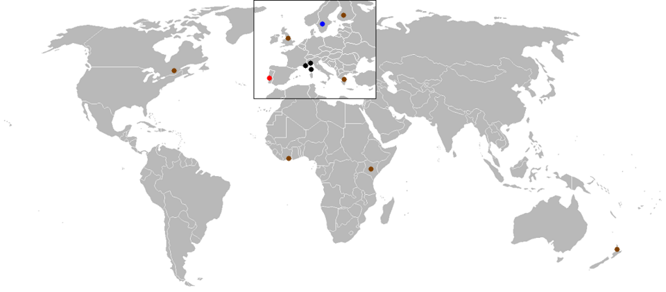 | Crno = Asfalt | Smeđe = Šljunak | Plavo = Snijeg/Led | Crveno = Miješana podloga |