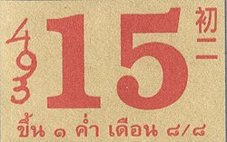 - Kuen 15 ขึ้น ๑๕ puni Mjesec (uštap); također poznat kao