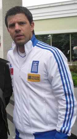 Fyssas kao član stručnog stožera grčke nogometne reprezentacije u 2012. | ||