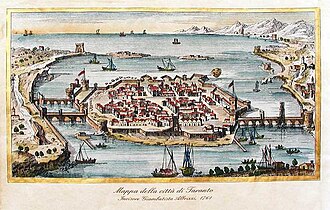 Suvremeni je grad izgrađen preko drevne grčke nekropole. Taranto je također poznat po britanskom napadu na bazu Regie Marine tijekom Drugog svjetskog rata, poznatom kao Bitka (ili Noć) Taranta.