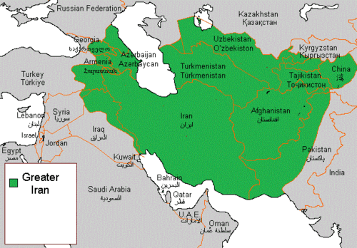 Zapadni autori „Enciklopedija Iranice“ (na engleskom jeziku) skloni su korištenju termina Veliki Iran ili Iranski kulturni kontinent. Taj teritorij nalazi se južno od rijeke Sir Darje, Kavkaza, Kaspijskog i Aralskog mora; istočno od Eufrata, te zapadno od rijeke Ind.