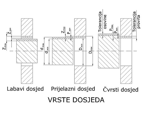 Vrste dosjeda osovine i provrta.