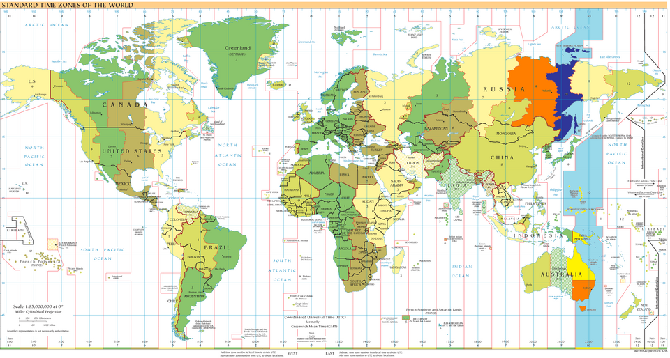 Sjeverna hemisfera - kao standardno vrijeme (zima)