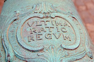 Izraz je nastao u doba tridesetogodišnjeg rata. Na topovima je po naređenju kardinala Richelieua pisala izreka: "Ultima ratio regum" ("Posljednje sredstvo kraljeva").