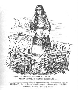 Ustaša - Hrvatska revolucionarna organizacija bila je hrvatska separatistička, nacionalistička i teroristička organizacija koja je počela organizirano djelovati nakon proglašenja diktature kralja Aleksandra I. Karađorđevića, a za cilj je imala stvaranje teritorijalno proširene hrvatske države i rušenje Kraljevine Jugoslavije svim mogućim sredstvima, [1] uključujući primjenom terora i nasilja.[2] Ustaški režim je posebno bio revanšistički upravljen protiv Srba, a savezom s nacistima i fašistima, ustaški režim prihvatio je ideologiju mržnje prema Židovima i Romima te sudjelovao u progonima i genocidom nad tim narodima, kao i Hrvatima političkim protivnicima. U uskim svezama s nacističkim i fašističkim zaštitnicima,[3] čije je mnoge metode obračunavanja preuzeo i time kompromitirao hrvatsku borbu za neovisnost što je obilato zloupotrijebljeno protiv Hrvata u Jugoslaviji i Hrvata u inozemstvu.