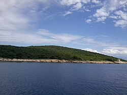 Uvala Konobe. U prvom planu je lokalitet Mala Krasa; lijevo je rt Negrit, a u njegovoj pozadini se vide niski otočići Kormati. Desno od njih je otok Plavnik. Duž pozadine cijele slike je otok Cres.