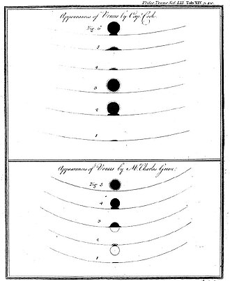 Postojanje atmosfere Venere pretpostavio je Mihail Vasiljevič Lomonosov 1761. prilikom njezinog tranzita, kada je trenutak prije vizualnog dodira Venere i Sunca ugledao svijetleći luk. Lomonosov je to svijetljenje rastumačio svjetlošću Sunca raspršenoj u Venerinoj atmosferi.