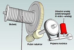 Okretanjem bubnja jedan se slobodni kraj užeta povlači silom F, pa se zbog trenja između užeta i bubnja drugim slobodnim krajem užeta može povlačiti teret silom Ft. Omjer tih dviju sila iznosi: