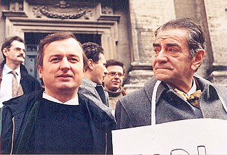 Osamdesetih se angažirao i politički kao član Talijanske radikalne partije - Marca Pannelle i bio jedan od osnivača Radikalnog udruženja za Sjedinjene Europske Države. Vlastimir je zaslužan što je 31. prosinca 1991. Marco Pannella usred stalnih topničkih napada došao u Osijek proslaviti Novu godinu.[2] Taj događaj odjeknuo je širom svijeta i na svoj način pomogao da se napadi smanje.