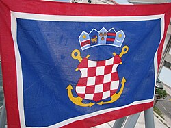 Raniji izgled pramčane zastave koji je zamijenjen Odlukom iz 1999. godine (varijacija hrvatskog grba preko dva ukrštena sidra) ostala je u upotrebi i vjerojatno će tako ostati sve dok te zastave ne budu zamijenjene.[6]