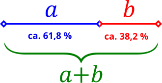 - Kružnica oko A s polumjerom AD sječe dužinu AB u točki S i dijeli dužinu AB u omjeru "zlatnog reza".