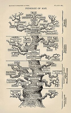 [[Datoteka:Tree of life by Haeckel.jpg|mini|desno|250px|Drvo života kako ga je prikazao [[Ernst Haeckel]] u djelu ''Evolucija čovjeka'' ([[1879.]]) ilustrira pogled iz [[19. stoljeće|19. stoljeća]] na evoluciju kao progresivni proces koji je vodio čovjeku.]] | [[Datoteka:Tree of life by Haeckel.jpg|mini|desno|250px|Drvo života kako ga je prikazao [[Ernst Haeckel]] u djelu ''Evolucija čovjeka'' ([[1879.]]) ilustrira pogled iz [[19. stoljeće|19. stoljeća]] na evoluciju kao progresivni proces koji je vodio čovjeku.]] | ||