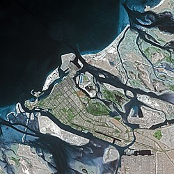 Pretežni dio Abu Dhabija nalazi se na otoku, međutim mnoga predgrađa nalaze se na kopnu, primjerice: Khalifa A, Khalifa B, plaža Raha, naselje Između Dva Mosta, Baniyas i Mussafah.