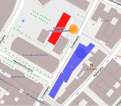 Narančasto - lokacija uništenog automobila (nije mjesto eksplozije)