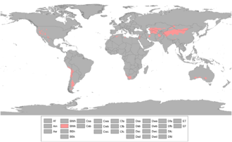 [[File:Koppen World Map BWk.png|thumb|300px|Područje hladne pustinjske klime]] | |||