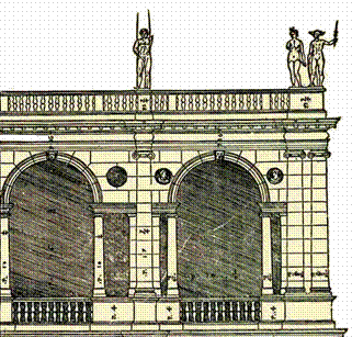 <!--'''Palladijev motiv'''-->[[ | <!--'''Palladijev motiv'''-->[[Datoteka:Palazzo della Ragione.gif|thumb|mini|'''Paladijev motiv''' na crtežu Palazzo della Ragione (tzv. „Bazilike“) u [[Vicenza|Vicenzi]], objavljen u Palladijevoj knjizi „Quattro Libri dell'Architettura“). 1570.]] | ||