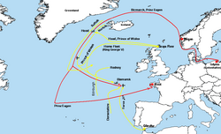 Kada su svibnja 1941. njemački bojni brod Bismarck i teška krstarica Prinz Eugen isplovili za Atlantik, Hood je pod zapovjedništvom kapetana Ralpha Kerra i komandatom grupacije Admiralom Lancelotom Hollandom, zajedno s HMS Prince of wales, 2 teške krstarice i 6 razarača poslan da spriječi njihov proboj prije susreta sa savezničkim konvojima. Susreli su se i sukobili 24. svibnja, u Danskom prolazu, između Islanda i Grenlanda.