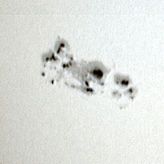 [[datoteka:Sun projection with spotting-scope.jpg|mini|250px|desno|Sunčeve pjege snimljene 22. lipnja 2004.]] | |||