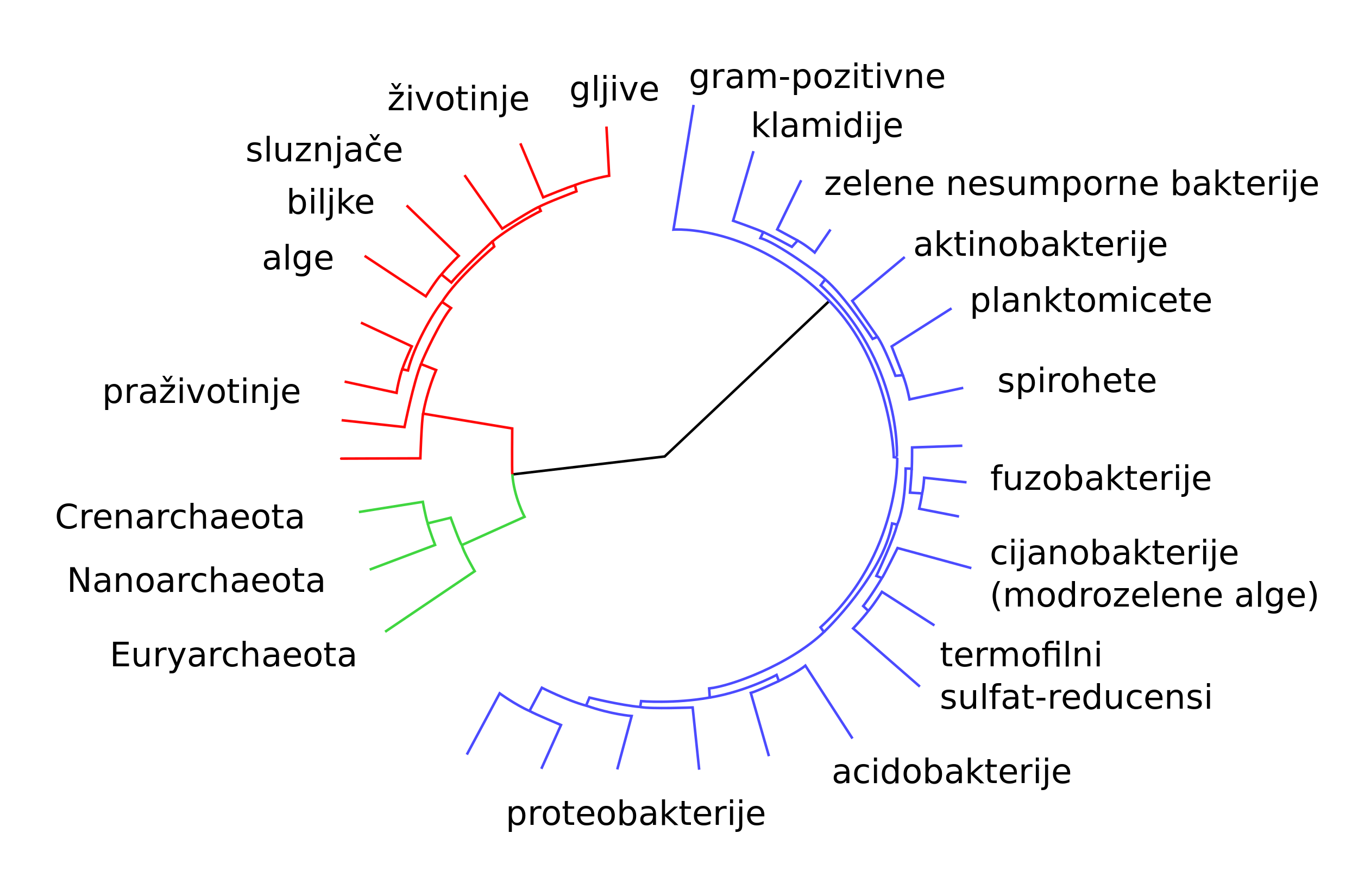 Prijenos gena na većoj skali se također dogodio između predaka eukariotskih stanica i bakterija za vrijeme stjecanja kloroplasta i mitohondrija. Moguće je da su eukarioti i nastali vodoravnim prijenosom gena između bakterija i arheja.[74]