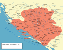 - ↑ Imamović, Mustafa. https://books.google.ba/books?id=q3VpAAAAMAAJ&dq=kralj+Srbljem,+Bosni+1390&focus=searchwithinvolume&q=%22kralj+Ra%C5%A1ke+,+Bosne+,+Dalmacije+,+Hrvatske+,+Primorja%22.