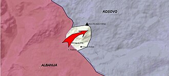 26. svibnja 1999. godine, OVK je pokrenula drugu napadnu operaciju četrdesetak kilometara jugoistočno u području planine [[Paštrik]], za koju su osigurali snage jačine od 3-4 tisuća ljudi. Cilj operacije bio je ovladavanje komunikacijom Prizren-Peć, te osiguravanje opskrbe za dio OVK koji se nalazio na Kosovu.<ref>{{Citiranje časopisa|last=Barić|first=Robert|authorlink=|coauthors=|title=Operacija Allied Force i ograničenja zračne moći|url=https://hrcak.srce.hr/2828|date=|year=2002.|month=listopad|journal=Polemos : časopis za interdisciplinarna istraživanja rata i mira,|volume=Vol. V|issue=No. 9-10, 2002.|pages=177-214|id=|accessdate=17. travanj 2014.}}</ref> Dio tih snaga činili su i pripadnici albanske dijaspore koji su se priključili OVK.<ref>{{Citiranje knjige|title=Homeland Calling: Exile Patriotism and the Balkan Wars|first=Paul|last=Hockenos|date=2018-07-05|url=https://books.google.hr/books?id=IaJhDwAAQBAJ&pg=PA238&lpg=PA238&dq=operation+arrow+kosovo&source=bl&ots=QOZCuy8zGw&sig=ACfU3U3HIQ_s7bxMZMqlEImtYbXTjFvDYQ&hl=hr&sa=X&ved=2ahUKEwj6wbXOwdThAhUExhoKHXULDWgQ6AEwCnoECAYQAQ#v=onepage&q=operation%20arrow%20kosovo&f=false|language=en|publisher=Cornell University Press|isbn=9781501725654}}</ref> Jugoslavenske snage, koje su na tom području raspolagale s teškim naoružanjem (oklopom i topništvom) brzo su zaustavile napadna djelovanja OVK, nanijevši im teške gubitke, tako da OVK nije ostvarila glavne ciljeve operacije - ovladavanje komunikacijom Peć-Prizren, već je samo osvojila nekoliko sela u blizini [[Peć (grad)|Peći]] i dijelove teritorija sjeverozapadno od [[Prizren|Prizrena]]. Upotreba, pak teškog naoružanja od strane Vojske Jugoslavije na tom dijelu ratišta privukla je pozornost NATO-a kojemu je bio olakšan posao identificiranja i uništavanja jugoslavenske tehnike i ljudstva.<ref>{{ | 26. svibnja 1999. godine, OVK je pokrenula drugu napadnu operaciju četrdesetak kilometara jugoistočno u području planine [[Paštrik]], za koju su osigurali snage jačine od 3-4 tisuća ljudi. Cilj operacije bio je ovladavanje komunikacijom Prizren-Peć, te osiguravanje opskrbe za dio OVK koji se nalazio na Kosovu.<ref>{{Citiranje časopisa|last=Barić|first=Robert|authorlink=|coauthors=|title=Operacija Allied Force i ograničenja zračne moći|url=https://hrcak.srce.hr/2828|date=|year=2002.|month=listopad|journal=Polemos : časopis za interdisciplinarna istraživanja rata i mira,|volume=Vol. V|issue=No. 9-10, 2002.|pages=177-214|id=|accessdate=17. travanj 2014.}}</ref> Dio tih snaga činili su i pripadnici albanske dijaspore koji su se priključili OVK.<ref>{{Citiranje knjige|title=Homeland Calling: Exile Patriotism and the Balkan Wars|first=Paul|last=Hockenos|date=2018-07-05|url=https://books.google.hr/books?id=IaJhDwAAQBAJ&pg=PA238&lpg=PA238&dq=operation+arrow+kosovo&source=bl&ots=QOZCuy8zGw&sig=ACfU3U3HIQ_s7bxMZMqlEImtYbXTjFvDYQ&hl=hr&sa=X&ved=2ahUKEwj6wbXOwdThAhUExhoKHXULDWgQ6AEwCnoECAYQAQ#v=onepage&q=operation%20arrow%20kosovo&f=false|language=en|publisher=Cornell University Press|isbn=9781501725654}}</ref> Jugoslavenske snage, koje su na tom području raspolagale s teškim naoružanjem (oklopom i topništvom) brzo su zaustavile napadna djelovanja OVK, nanijevši im teške gubitke, tako da OVK nije ostvarila glavne ciljeve operacije - ovladavanje komunikacijom Peć-Prizren, već je samo osvojila nekoliko sela u blizini [[Peć (grad)|Peći]] i dijelove teritorija sjeverozapadno od [[Prizren|Prizrena]]. Upotreba, pak teškog naoružanja od strane Vojske Jugoslavije na tom dijelu ratišta privukla je pozornost NATO-a kojemu je bio olakšan posao identificiranja i uništavanja jugoslavenske tehnike i ljudstva.<ref>{{Citiraj web|url=https://www.ausa.org/sites/default/files/NSW-99-1-Operation-Arrow-Task-Force-Hawk-and-Air-Power-KLA-Ground-Offensive-and-US-Army-Targeting-and-Intelligence-Point-to-Synergy-of-Joint-Approach.pdf|title=Operation Arrow, Task Force Hawk and Air Power:KLA Ground Offensive and U.S. Army Targeting and Intelligence Point to Synergy of Joint Approach |date= 8 Srpnja 1999. |publisher=The Institute of Land Warfare|accessdate=2019-04-17|language=engleski}}</ref> | ||