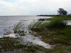 Priobalno područje i obale jezera obrasle su s 54 različite vrste vodenih biljaka među kojima su najraširenije trska, iđirot, milava. Plutajuće biljke u priobalju su rijetke i čine ih strelice, žuti lokvanj i vodeni dvornik.[6] Močvare u priobalnome pojasu značajna su hranilišta za labudove, patke i guske tijekom njihovih migracija s Bijeloga k Baltičkome moru.[7] Najraširenije riblje vrste su grgeč, deverika, bodorka, Coregonus autumnalis, Osmerus eperlanus.